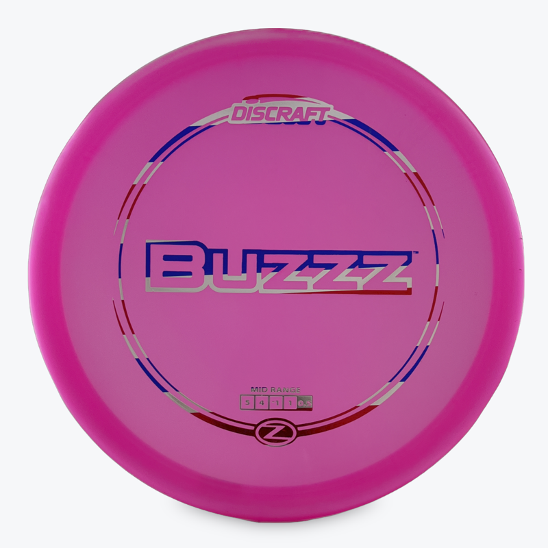 The Buzzz (3 z’s) is one of the most popular midrange discs in the world. This consistent, reliable, and stable disc will perform exactly how you want it to. With powerful throws the Buzzz will hold any line you put on it. With light, level throws, it will fade slightly. This super popular disc can be purchased in all of Discraft's plastics. In base line plastics it has a stability rating of 0. In premium plastic blends this disc is slightly overstable with a Discraft rating of .5.