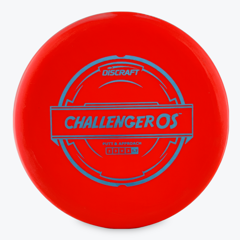 The Challenger OS is a more overstable, flat-topped version of the popular Challenger. This putter works best for driving, throwing into headwinds, weaving forehand approaches, and tossing hyzer putts. It is overstable enough to meet the majority of a player's needs without feeling like a meat hook.