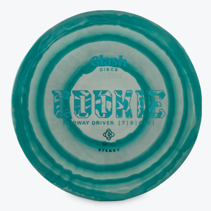 The Cookie is a straight to stable fairway driver by Clash Discs. It offers a reliable flight path and can be easily manipulated to hold different angles. Clash Discs designed the disc to have just enough torque resistance so it is also a great choice for forehand players.
