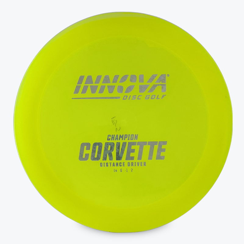 The Corvette is Innova's second speed-14 driver. It will take off down the fairway like a rocket! Soon, glide will take over and keep the disc coasting down the fairway. It has enough fade at the end to bring it home reliably. Get max distance and speed with the Corvette.