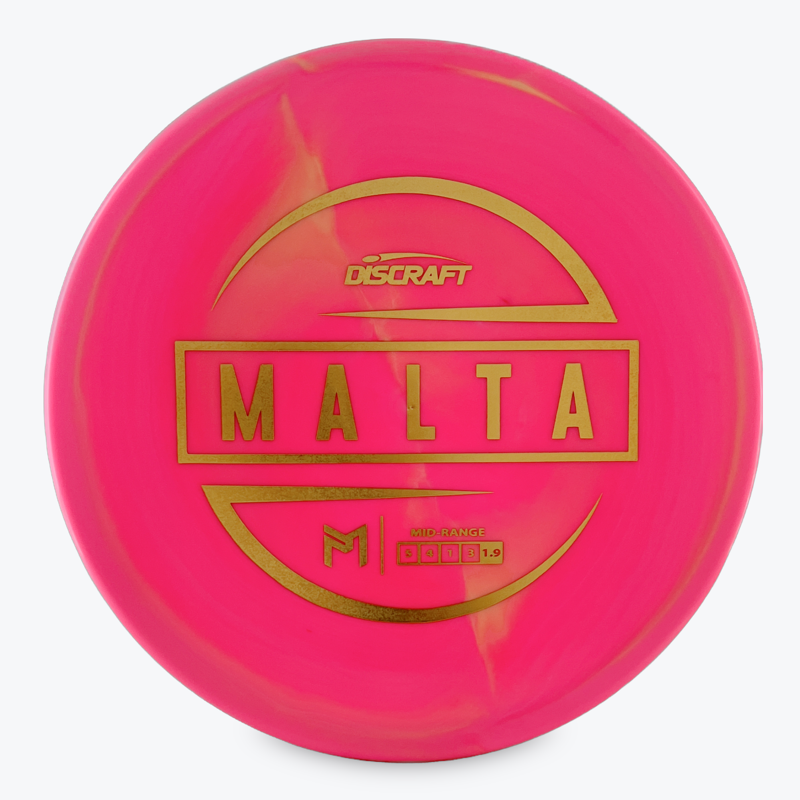 The Malta, an overstable midrange, is Paul McBeth's 4th disc. The Malta has a strong and controllable flight. It has a similar feel and flight to the Zone, but with the distance and trustworthiness of a Buzzz. The Diameter is slightly bigger than a Zone, but not as wide as a full size wide-diameter midrange.