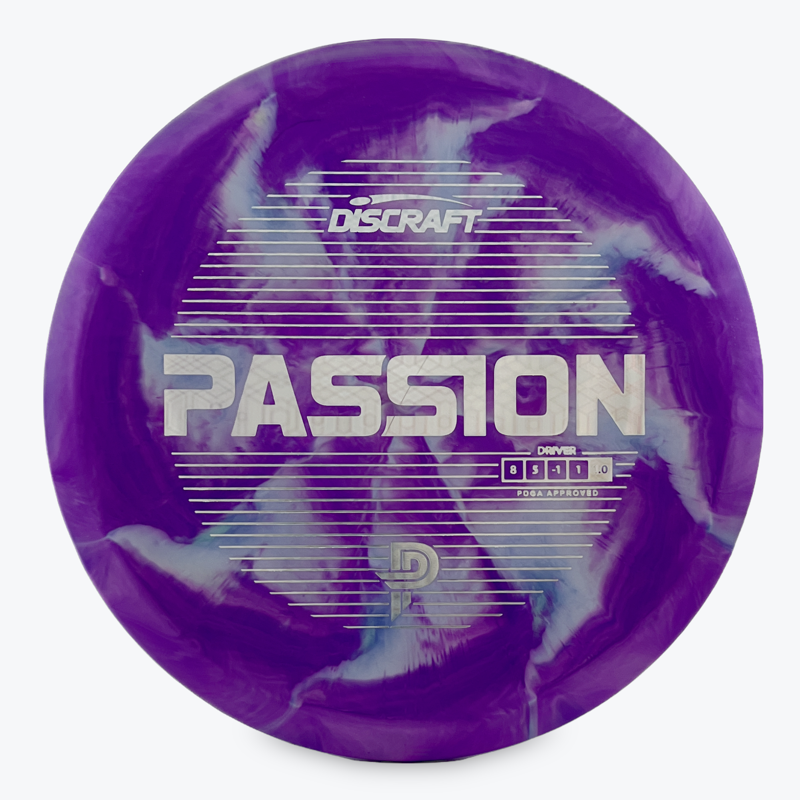 The Passion is a Paige Pierce branded fairway driver with a straight flight and a unique flat outer rim configuration. It is very similar to the classic Discraft Cyclone but with less of a bead, tuning it for a straighter, more dependable flight for precision placement on the fairway.