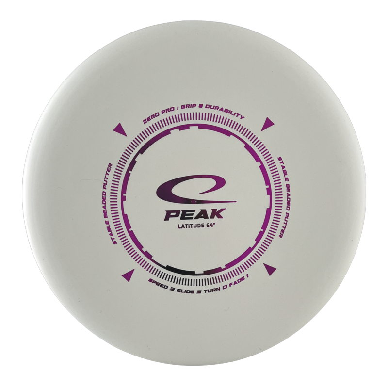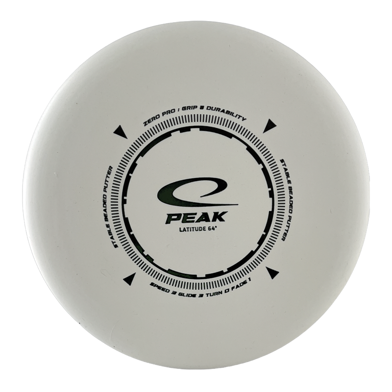 The Latitude 64 Peak is a low-profile, beaded putter designed for consistency and precision. Inspired by the popular Pure, the Peak offers the same smooth flight with the added control of a small bead. This subtle adjustment enhances grip and provides a touch more stability, making it a dependable choice for putts and precision approach shots. Whether you're inside the circle or attacking the basket from distance, the Peak is built for confident, controlled throws.