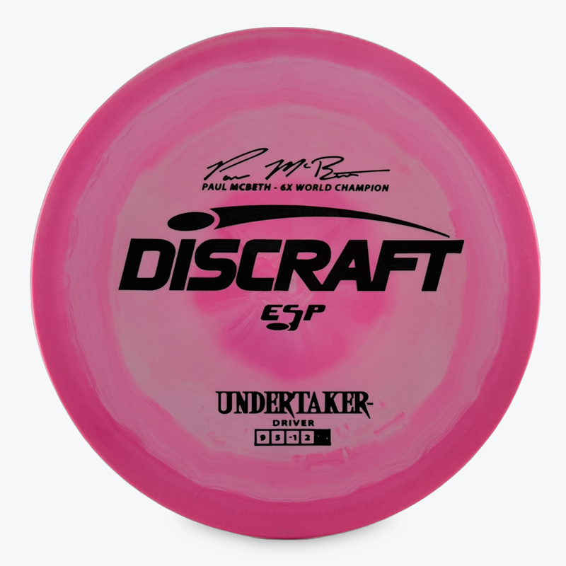 The Discraft Undertaker is a moderately overstable driver released in the summer of 2016. This disc offers some turn in flight, but will finish with a manageable fade. The Undertaker will take on headwinds and offer a flight that can be utilized for both backhand and forehand throws.