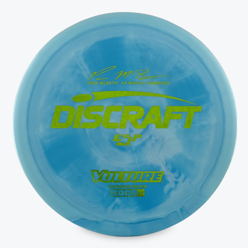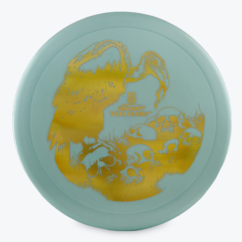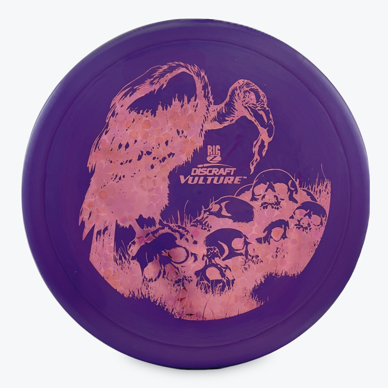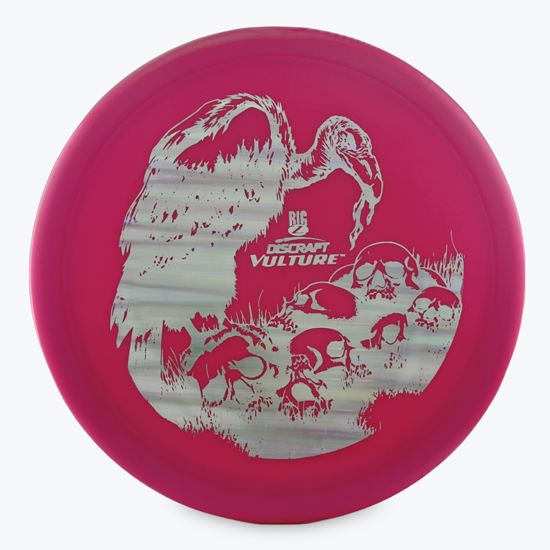 The Discraft Vulture is described as a beat in Predator that is less overstable and offers more glide. This fairway driver has excellent control and is stable enough to manage moderate headwinds.