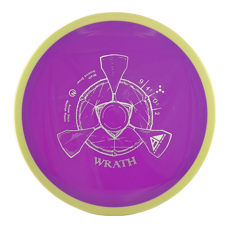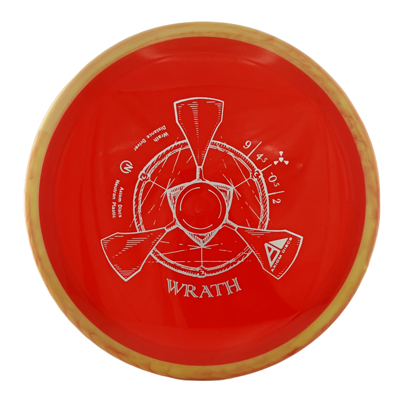 The Axiom Wrath (not to be confused with the Wraith) is a straight-stable 9 speed distance driver. It is slightly less stable than the MVP Tesla, and is available in many more color options. The Wrath is a solid disc for both backhand and forehand drives.